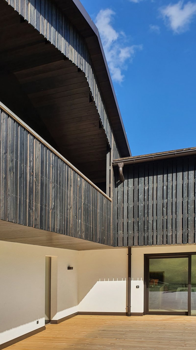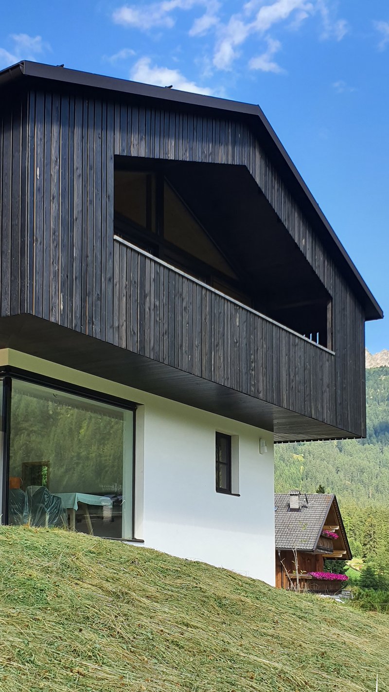 Die charakteristische Paarhofstruktur, typisch für das Sarntal, wird aufgenommen und zeitgemäß interpretiert. Inspiration boten historische Vorbilder aus dem Werk „Bauernhöfe in Südtirol, Band 2 – Sarntal“ von Helmut Stampfer (Athesia Verlag). Wie bei vielen traditionellen Höfen spielt die auskragende Holzkonstruktion im Obergeschoss auch hier eine prägende Rolle – jedoch neu gedacht und an heutige Anforderungen und technische Möglichkeiten angepasst, etwa durch großzügigere Verglasungen.